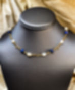This piece is handmade in gold-coloured chainmail and 18k gold plated wire flowers. It measures 20in and closes with a matching lobster clasp. Available as a set or as separate pieces.